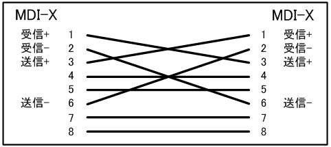 MDI と MDI、MDI-X と MDI-X のように、同じピン配列の場合は、クロスケーブルで送信と受信のピン配列を反転させることで